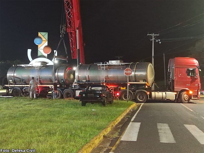 A Defesa Civil foi acionada e realizou a sinalização do local para garantir a segurança dos motoristas até a retirada do semirreboque. Foi constatado ainda que o compartimento transportava cerca de 22 mil litros de Arla, produto utilizado em veículos pesados movidos a diesel, sem registro de vazamento.